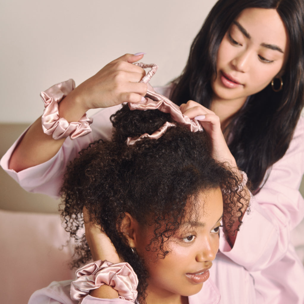 Découvrez notre chouchou Cloud Candy en duo, l'accessoire capillaire en soie ultra-luxueux qui rehaussera votre look quotidien. Chaque chouchou est fabriqué à partir de soie de mûrier 100 % naturelle, offrant une tenue douce sans tirer ni casser.