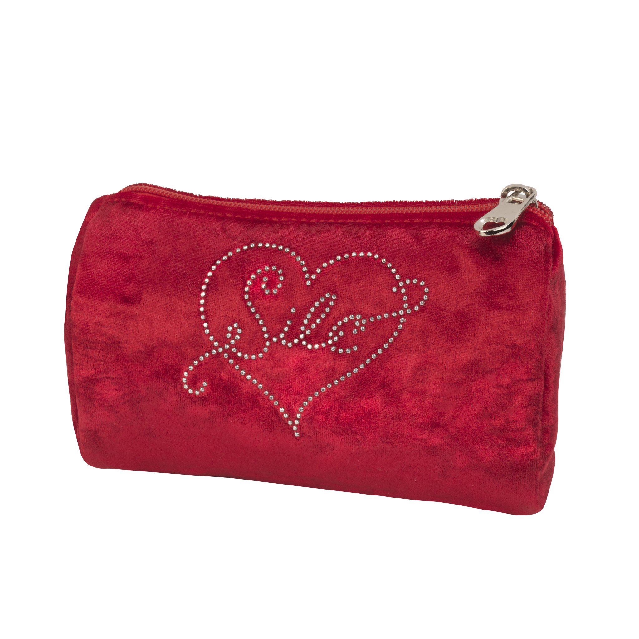 Crafted from soft red velvet fabric, our limited edition Ma Chérie Beauty Pouch is designed to hold all your daily essentials and favorite hair accessories. Complete with a sparkling Silc heart embellished with rhinestones, it adds a touch of glamour to your everyday carry.